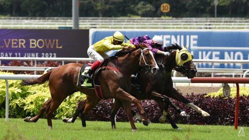 A race taking place at the Singapore Turf Club on Jun 11, 2023. (Photo: CNA/Jeremy Long)
