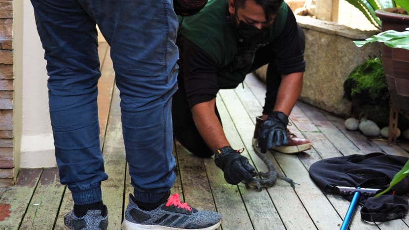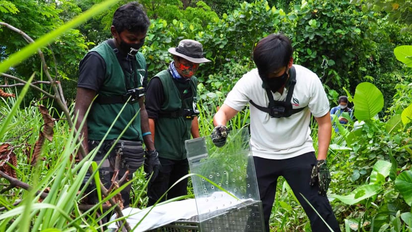 In the two days with NParks’ wildlife rescuers, CNA tagged along as they retrieved a bronzeback snake from a closet, released a palm civet and a python into the wild, and visited a hornbill recuperating after it was attacked by a cat in Sentosa.