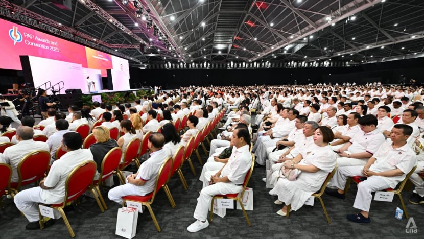Prime Minister and People's Action Party secretary-general Lee Hsien Loong speaks at the PAP awards and convention on Nov 5, 2023. (Photo: CNA/Jeremy Long)
