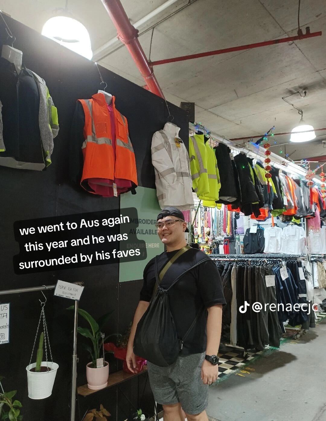 “We went to Australia again this year and he was surrounded by his favourite,” she said, referring to a photo of Mr Yap standing in front of a store that sells “tradie” uniforms.