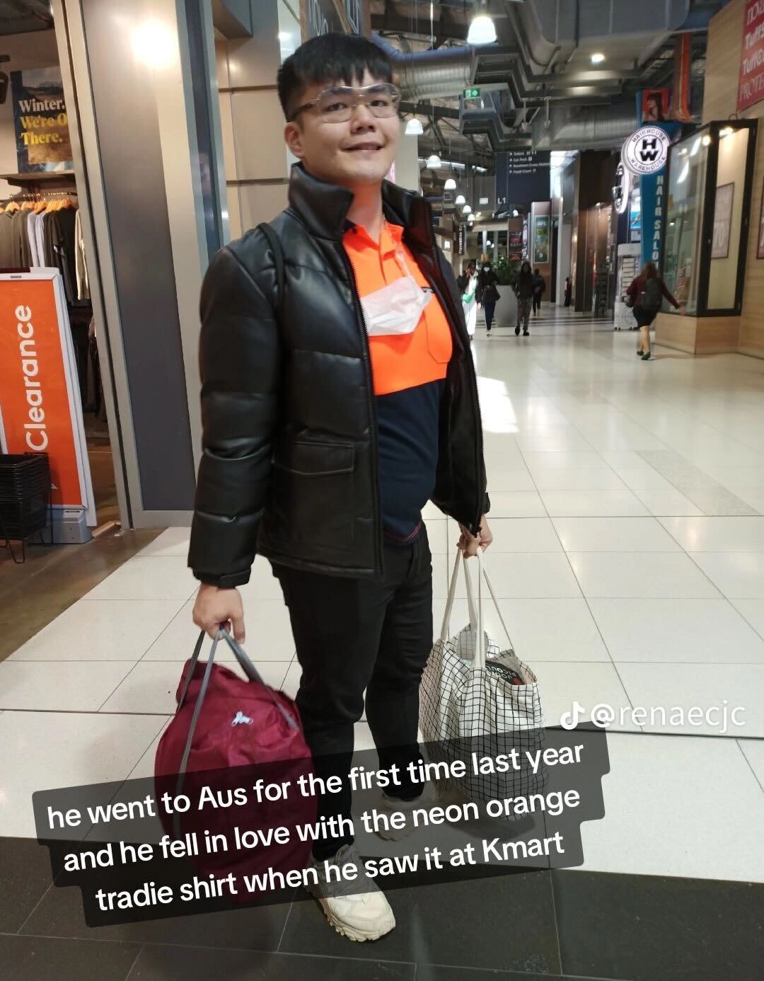 Ms Cheng explained how it was during their first trip to Australia in August last year when Mr Yap “fell in love” with the “tradie” shirt after spotting it at a Kmart outlet.