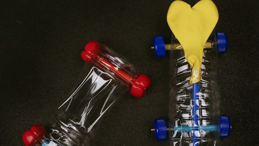 For Eli, Ms Huang once created a marble track by upcycling — or creatively repurposing — used cardboard rolls. She has also made him a plastic bottle race car with bottle caps for wheels and a balloon for the “engine”.