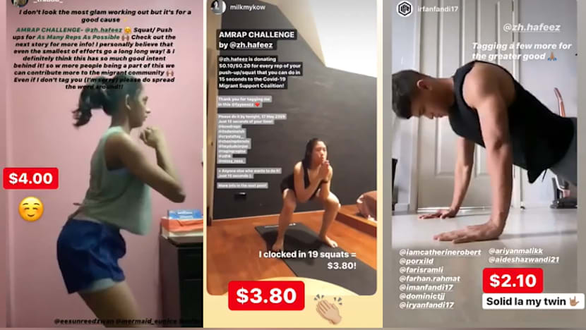 Among them is Zh Abdul Hafeez, who ended up donating S$1,008 of his own money to the Covid-19 Migrant Support Coalition by challenging his friends and family to a workout challenge.
