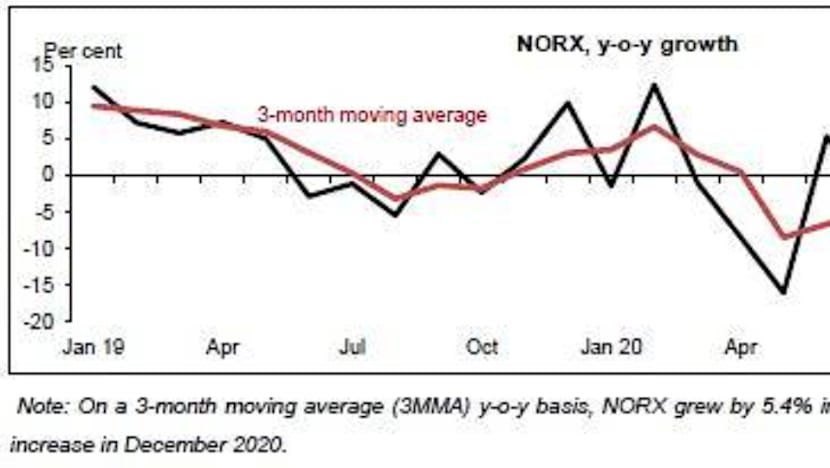 On a year-on-year basis, non-electronic NORX declined by 7.8 per cent in January, following the 10.1 per cent contraction in December.
