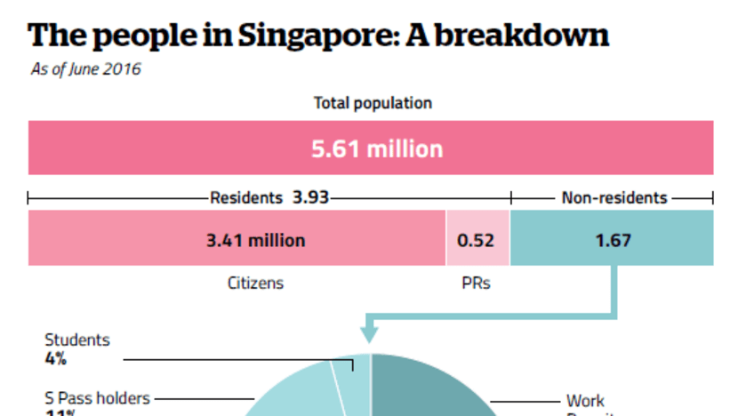 A breakdown of Singapore's population as of June 2016. Photo: National Population and Talent Division