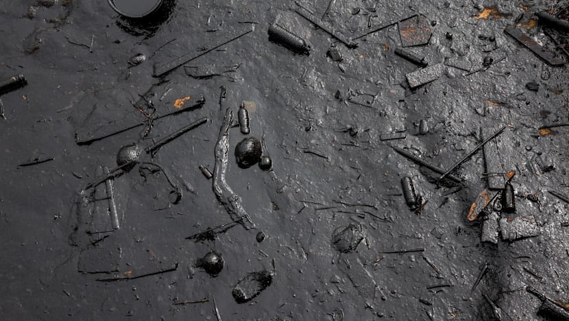 Oil started washing up on Saturday along the coast of several beaches in Singapore, including those on Sentosa island and in East Coast Park, staining the sand black and sending the stench of petrochemicals into the air.