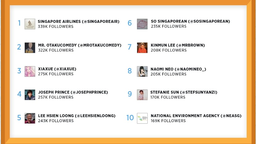 The list does not include Singaporeans based outside of the country as well as regional, news and media accounts.
