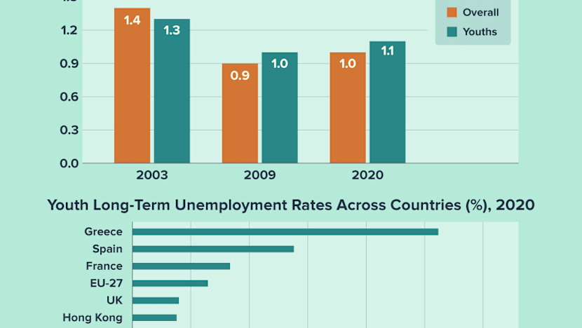 The long-term unemployment rate among the youth was 1.1 per cent in 2020, comparable to the overall average of 1 per cent, and during the Sars pandemic (1.3 per cent) and the Global Financial Crisis (1 per cent).