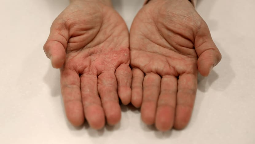 SINGAPORE — In the last few months, senior patient service associate Judy Tan, 56, who works at the National Skin Centre, has been struggling to find a balance between managing her eczema-prone skin and maintaining tip-top hand hygiene at work.