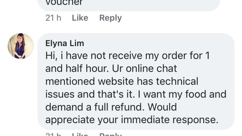 Over on Instagram, a Foodpanda user who only wanted to be known as Jenny posted a video with screenshots of her online chat with a customer service representative, in which she had demanded a refund after her order had failed to arrive after over an hour.