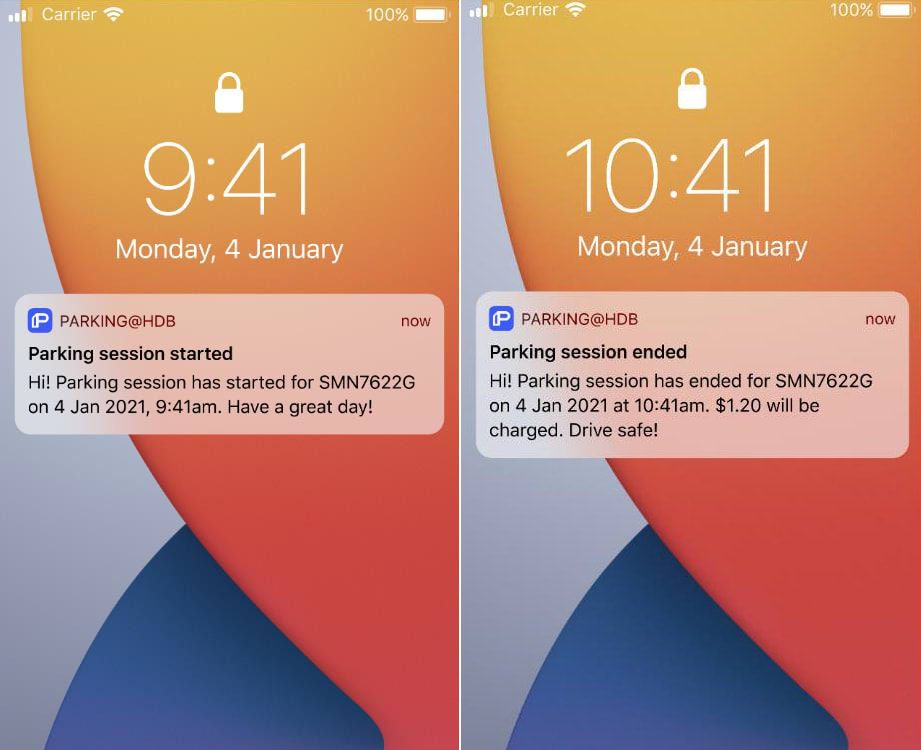 Motorists who downloaded the Parking@HDB app will receive in-app notifications in real-time at the start and end of their short-term parking sessions, as well as notifications on their incurred charges.
