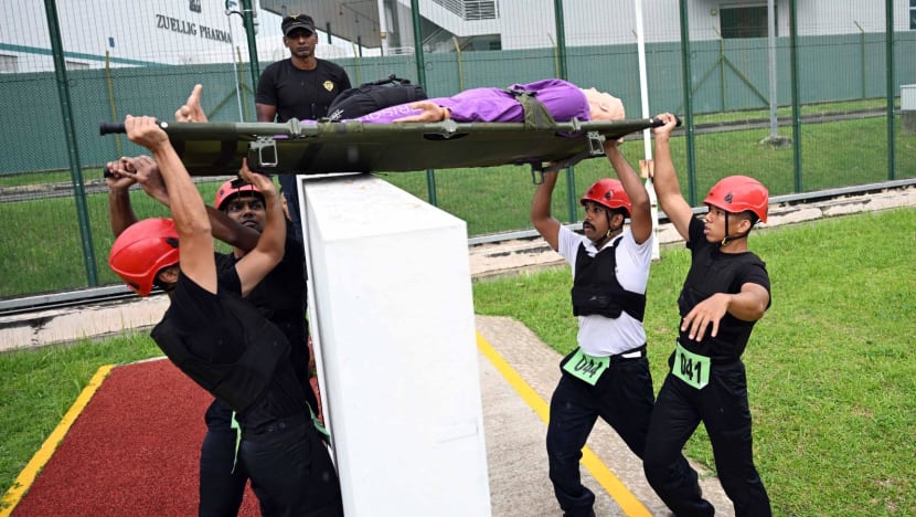 Shouts of encouragement like these echoed through Changi Prison Complex on Tuesday (Oct 1), as Singapore's elite prison security force selected its next batch of officers.