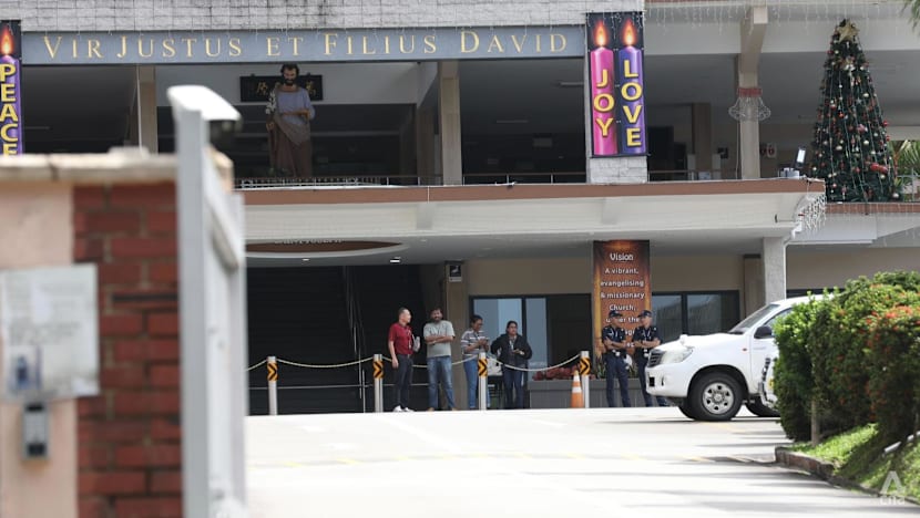 When CNA arrived at the scene shortly after 10am, police vehicles and a Singapore Civil Defence Force (SCDF) vehicle were parked inside the church compound.