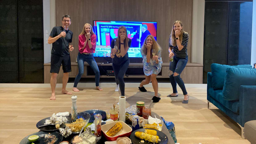 Unlike Ms Nielsen, Ms Jamie Alison Kloor-Shin, 40, wanted to be physically around friends for the nail-biting election and attended a small viewing party at a friend’s house.
