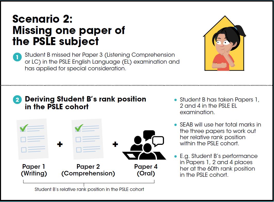 For candidates who miss one or more papers in a subject, SEAB will use the candidate's performance in the papers they did take to derive a projected outcome for the subject. Their performance in the prelim examinations will also be taken into consideration.