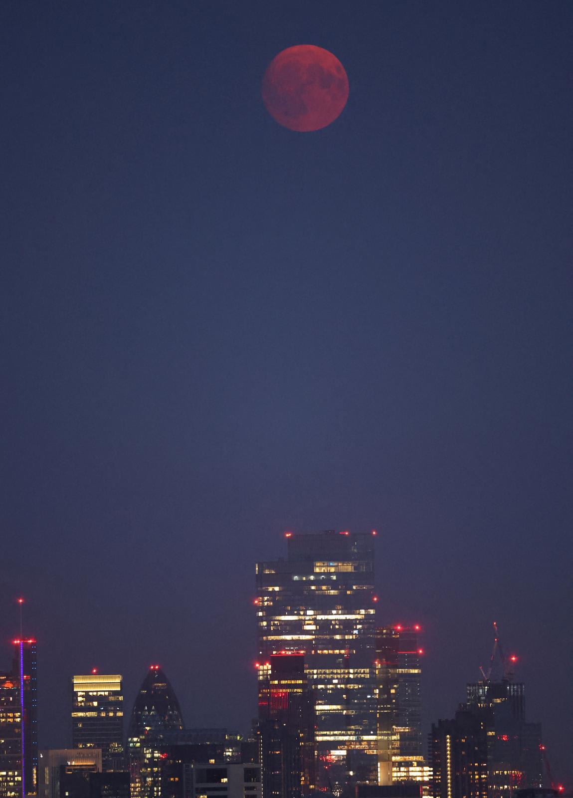 And over in London on Sunday night - a day ahead of the full supermoon proper - Earth's satellite made its appearance in glowing red.