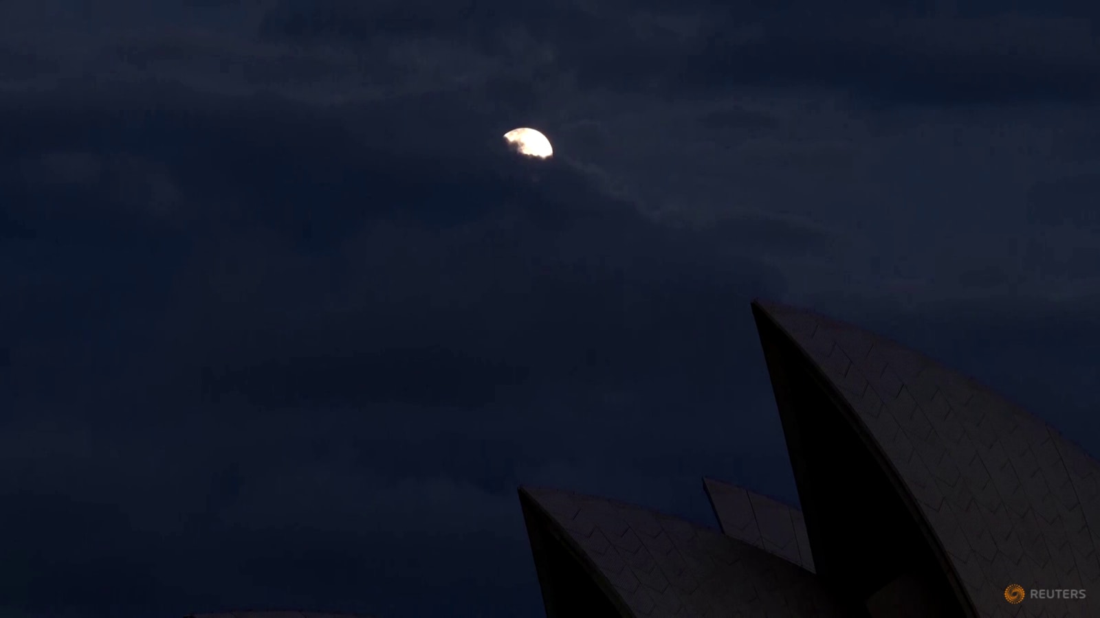 Patient skywatchers in Australia were rewarded with a view of the supermoon hanging over the Sydney Opera House once it broke through the clouds.