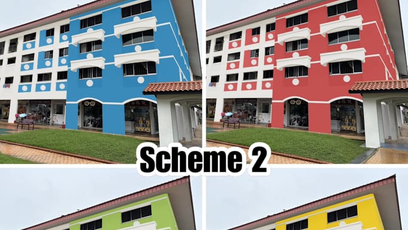 “Scheme 2 (is) colourful. (It's) nice (and it's) something different. As long (as it's) not red,” another one wrote, in an apparent reference to a red colour scheme at a Tampines HDB project unveiled earlier this year.