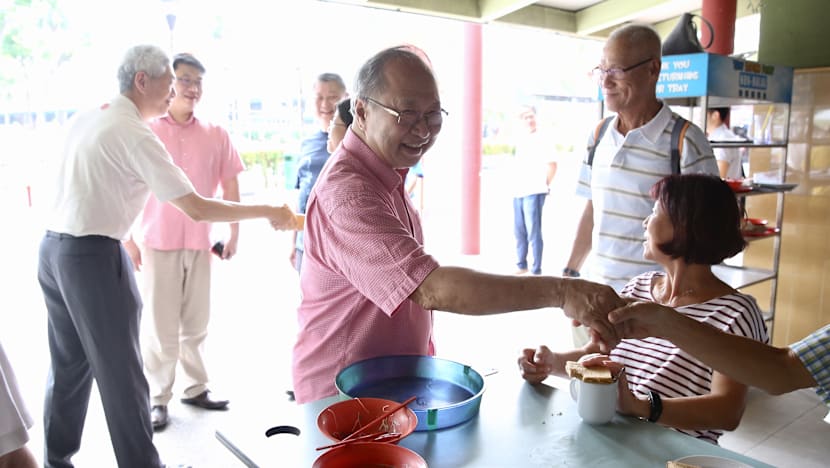 Mr Ang Hin Kee, a PAP MP for Ang Mo Kio GRC, was doing his rounds at the food centre on Saturday morning, handing out Chinese New Year red packets to residents, at the same time as Dr Tan and Mr Lee's breakfast meeting.