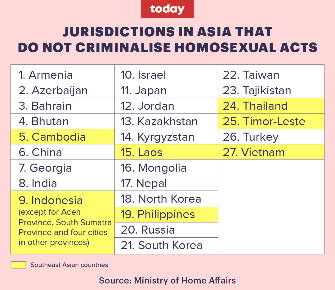 SINGAPORE — Fifteen years after a heated parliamentary debate on Section 377A that criminalises sex between men, Law and Home Affairs Minister K Shanmugam said on Monday (Nov 28) that the time has come for the law — which "humiliates and hurts gay people" — to be repealed.