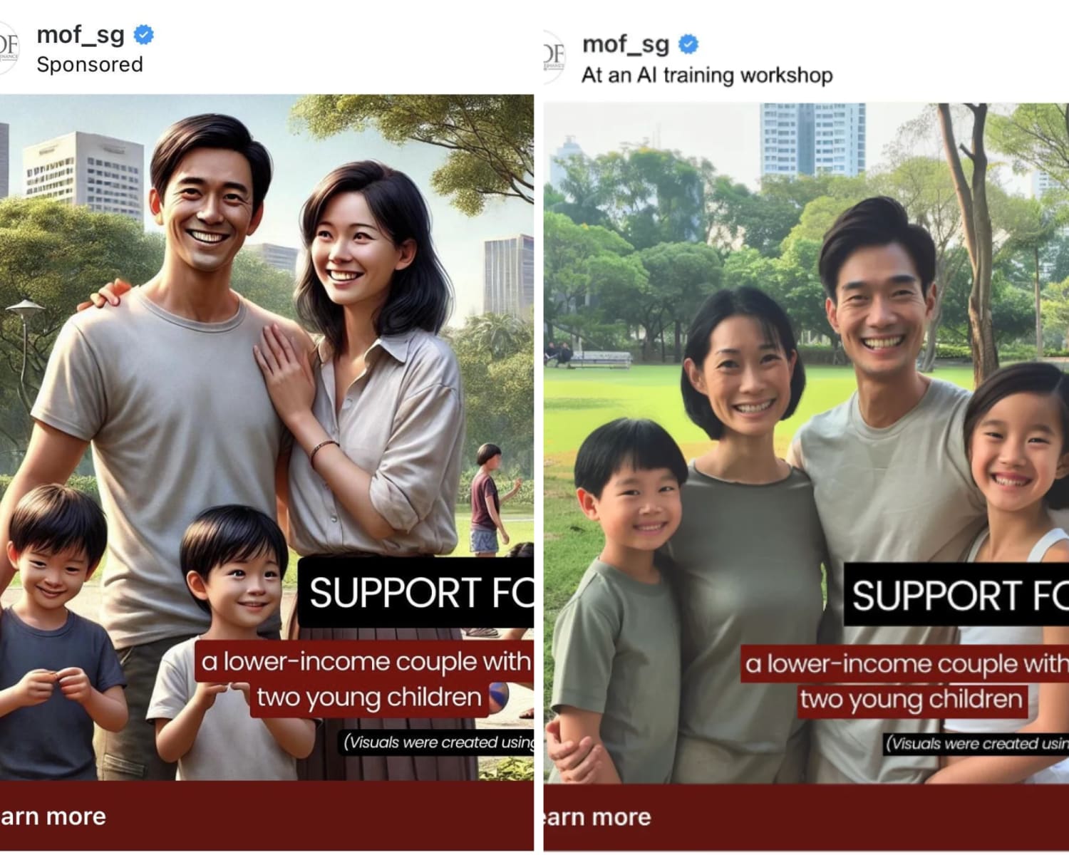 SINGAPORE — An online advertisement by the Ministry of Finance (MOF), which features an image of a family generated by artificial intelligence (AI), has been lambasted by social media users.