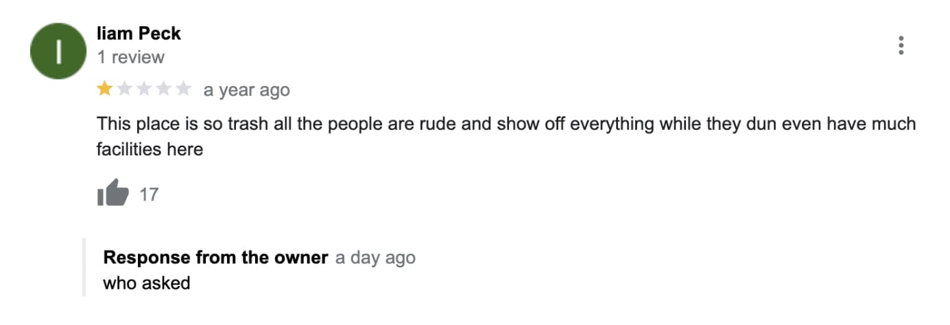 Another review claimed that the school’s teachers are "horrible" and the principal “isn’t doing a great job”, to which the admin wrote: “Hey man, not cool man.”
