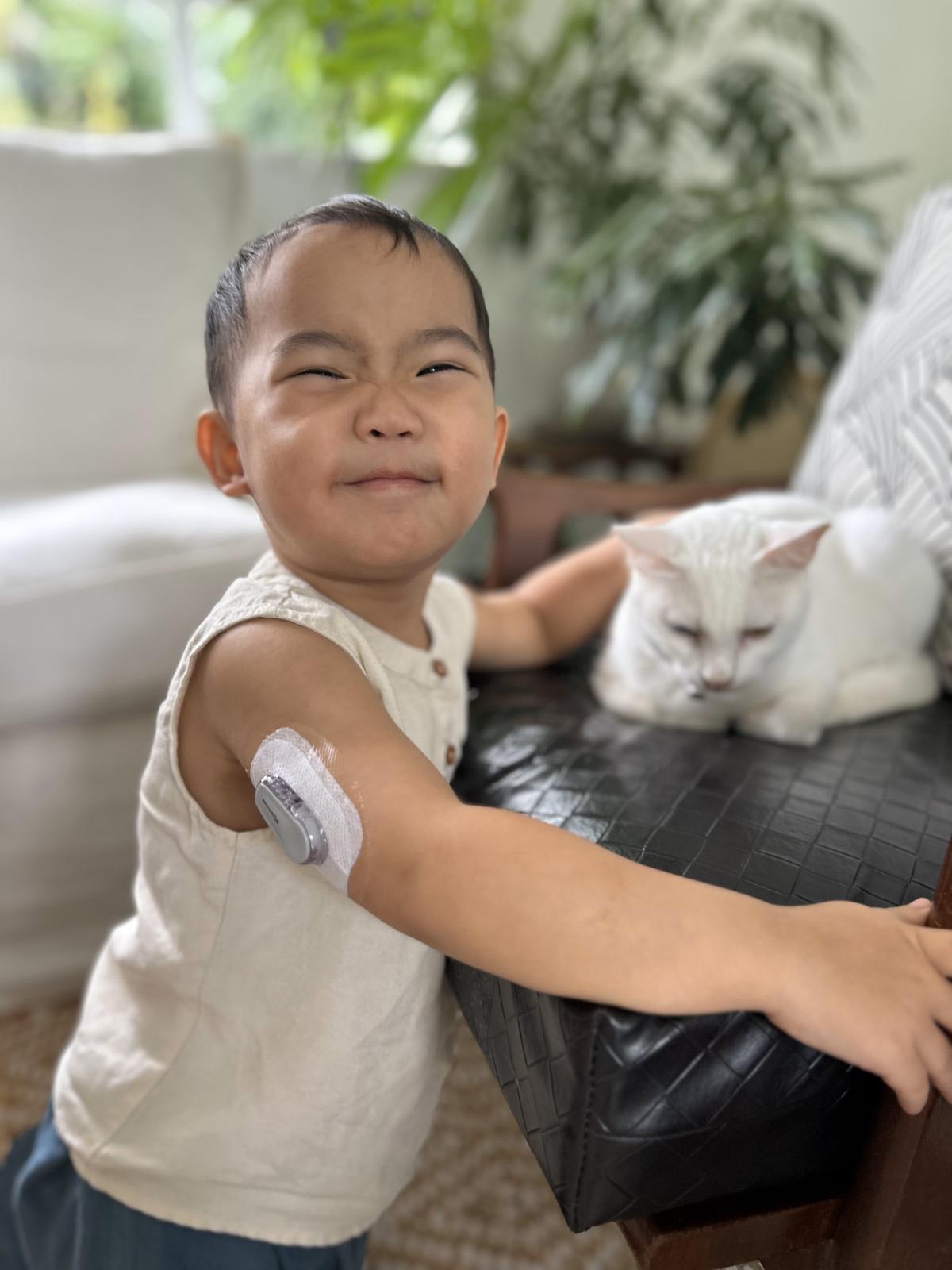 Before he was put on the continuous glucose monitoring (CGM) system, the three-year-old had to endure four to six finger prick tests a day.