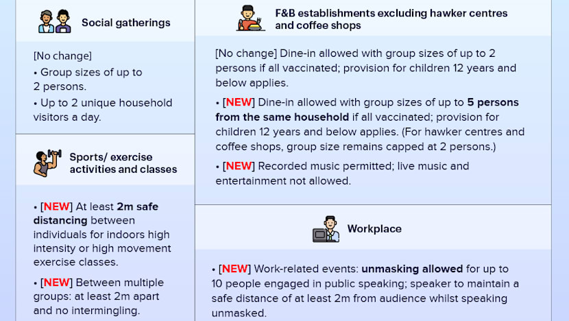 For vaccinated individuals from different households, the group size for dining at F&B outlets will remain capped at two.