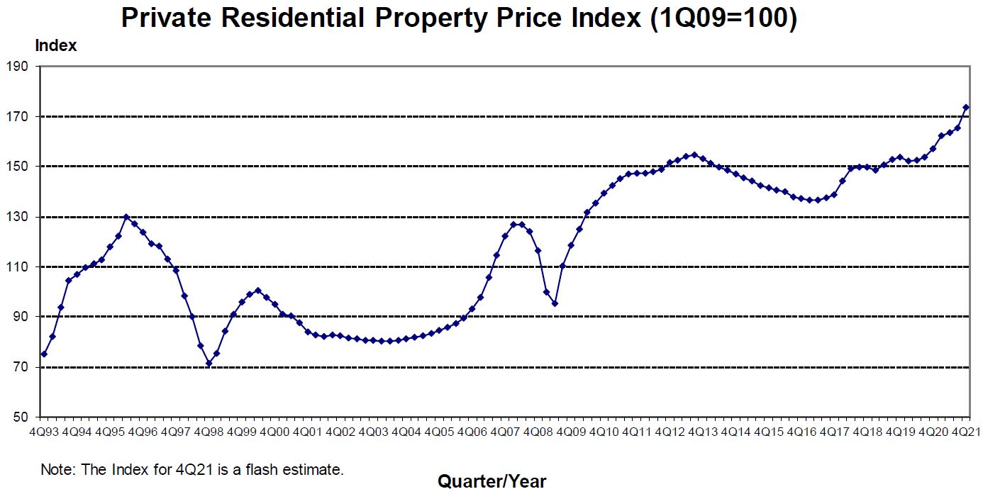 For the whole of 2021, prices in the CCR, RCR, OCR rose by 3.7 per cent, 16.9 per cent and 8.4 per cent respectively.