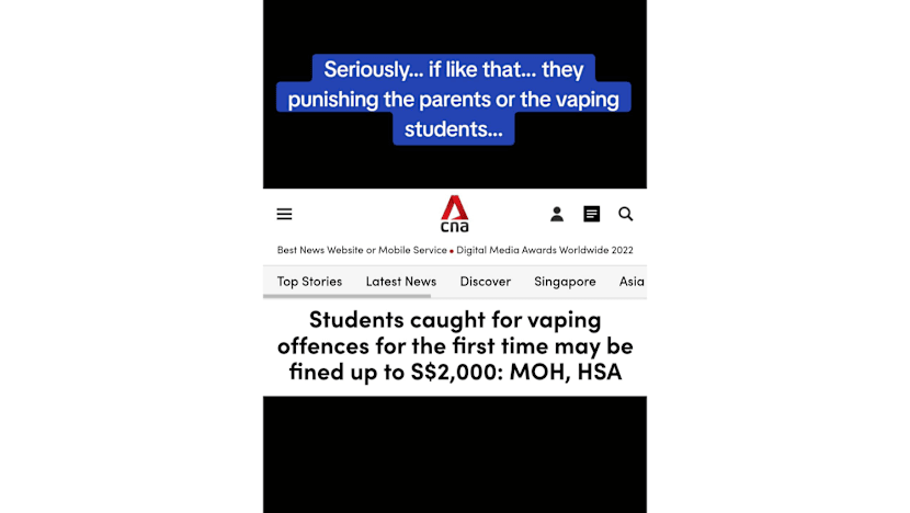 TikTok user "garygaryocp", for instance, posted a screenshot of a news article on the announcement on the short-form video platform on Wednesday, commenting: "Seriously... if like that... (are) they punishing the parents or the vaping students?"