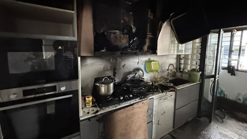 When TODAY visited Ms Wei’s residence in Clementi, the kitchen was still covered in soot. She was preparing the family’s dinner, chopping vegetables over a bucket in the living room.