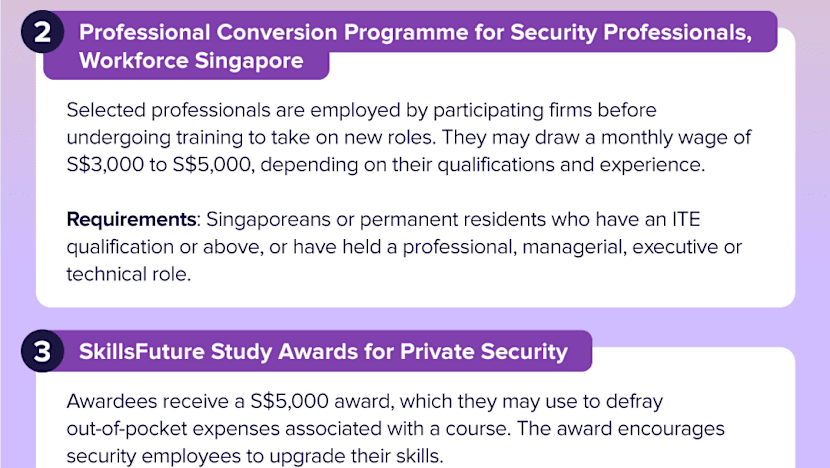 MOM, WSG and MHA said that an industry transformation map, launched in 2018, aimed to raise productivity and make job requirements less labour-intensive in the security sector.