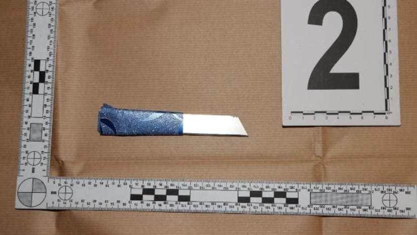 Police seized two knives from the 53-year-old woman during the stand-off along Tampines Street 82 on Monday, Sep 19, 2022. (Photo: Fuad Mohammad, SPF)