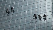 File photo of workers cleaning a building in the Central Business District in Singapore on Nov 16, 2022. (Photo: CNA/Hanidah Amin)