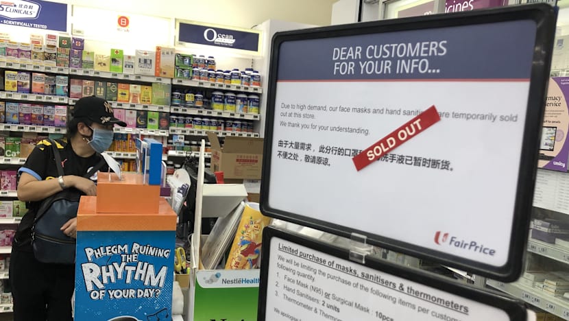 A search on supermarket chain NTUC FairPrice’s website showed that its surgical masks and N95 masks — which offer more protection than surgical masks but are regarded as unnecessary for the coronavirus — were out of stock.