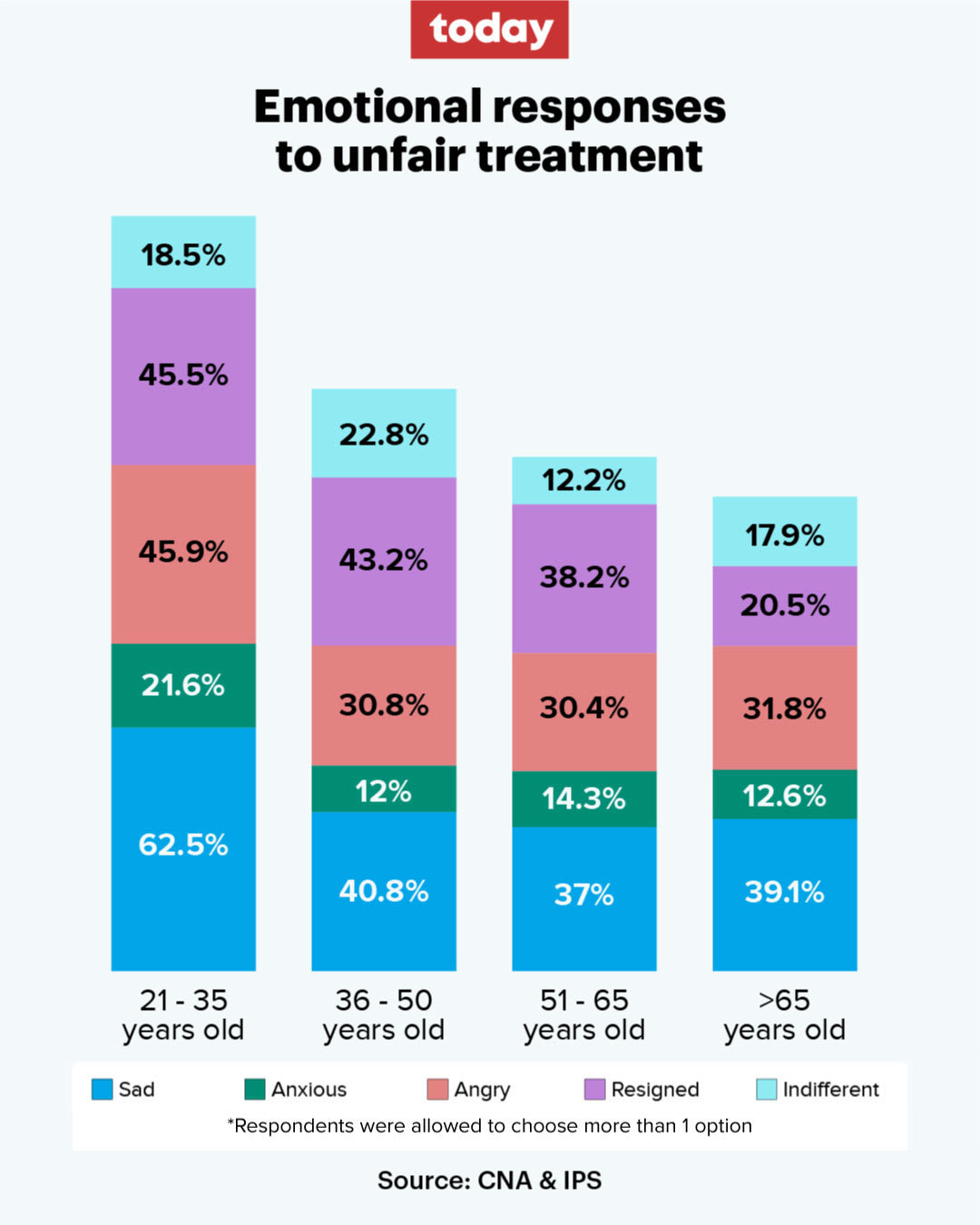 On the other hand, older respondents would feel resigned, with 43.2 per cent of those aged 36 to 50 and 38.2 per cent of those aged 51 to 65 feeling this way.