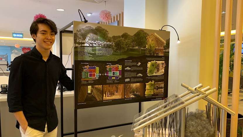 Mr Jared De Souza, 19, a second-year interior architecture and design student at Temasek Polytechnic, incorporated greenery into his design, with an idea to have a “forest of columns” resembling intertwining trees in the main building.