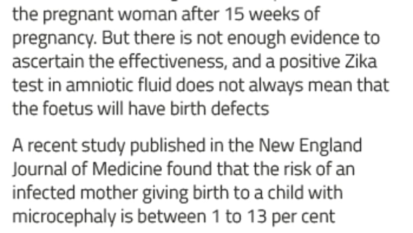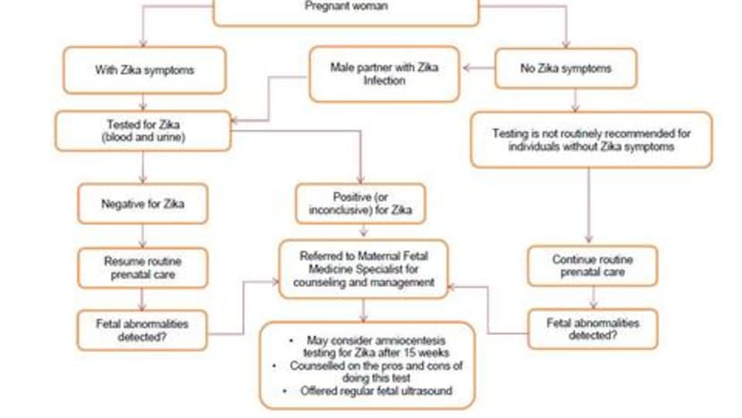 In countries with community transmission of Zika Virus Infection and in line with WHO’s guidelines, pregnant women with Zika are advised to follow up closely with healthcare practitioners to detect any fetal abnormalities. Singapore has also adopted similar recommendations.