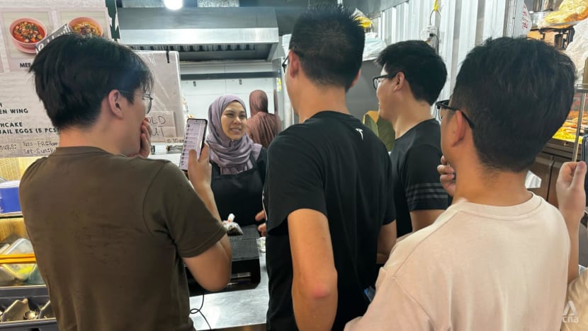 A queue started forming around 9am and peaked at lunchtime. When CNA arrived at 2pm, many supporters were still there taking photos in front of the stall or talking to a livestream audience as they tucked into a bowl of lontong.