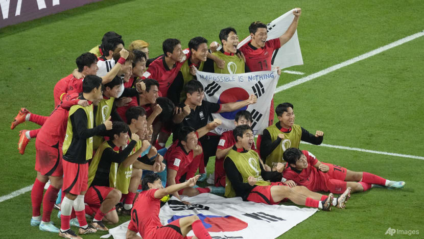 South Korea players celebrate after the World Cup Group H match between South Korea and Portugal at the Education City Stadium in Al Rayyan, Qatar, Dec 2, 2022. (Photo: AP/Francisco Seco)