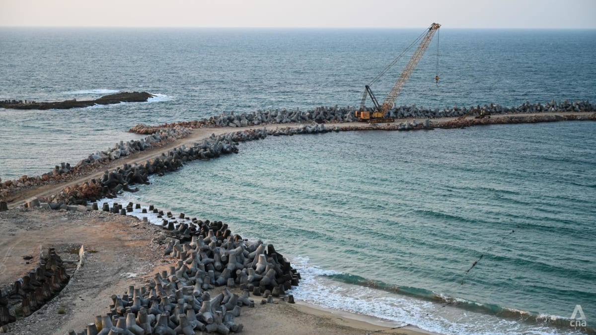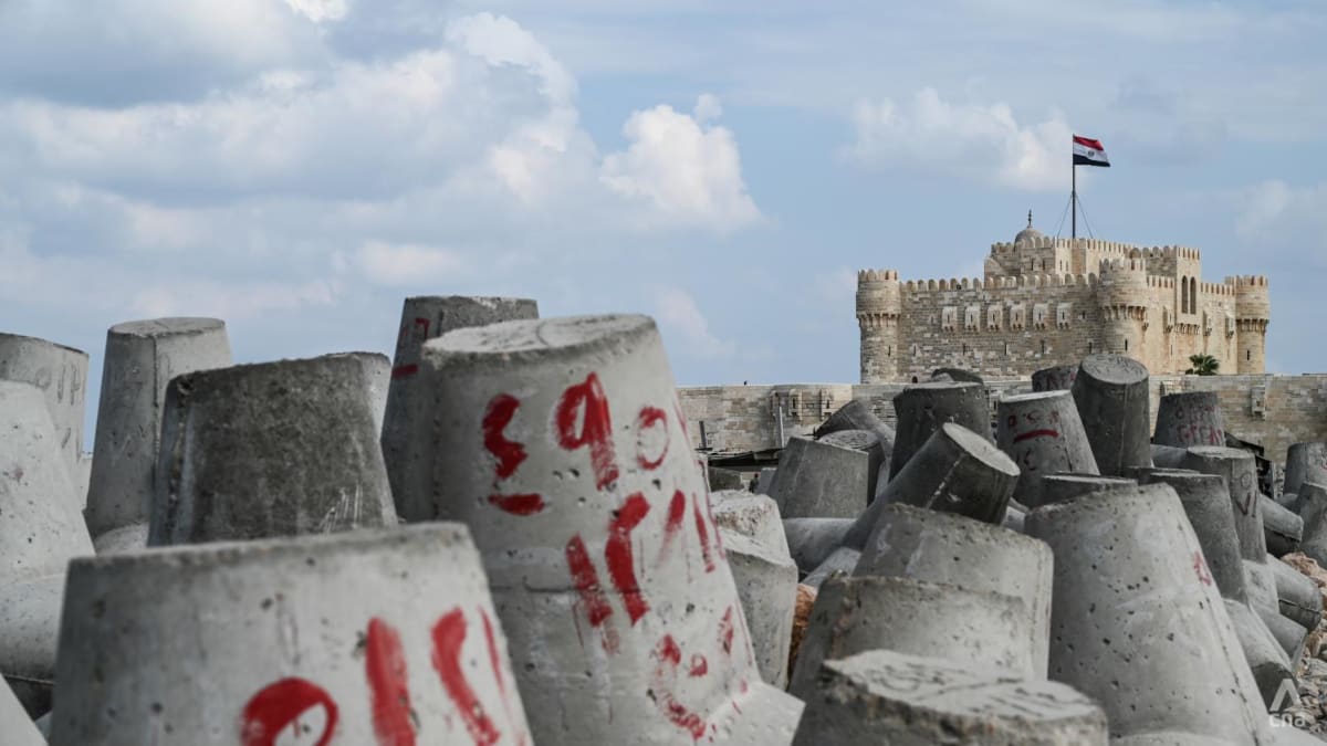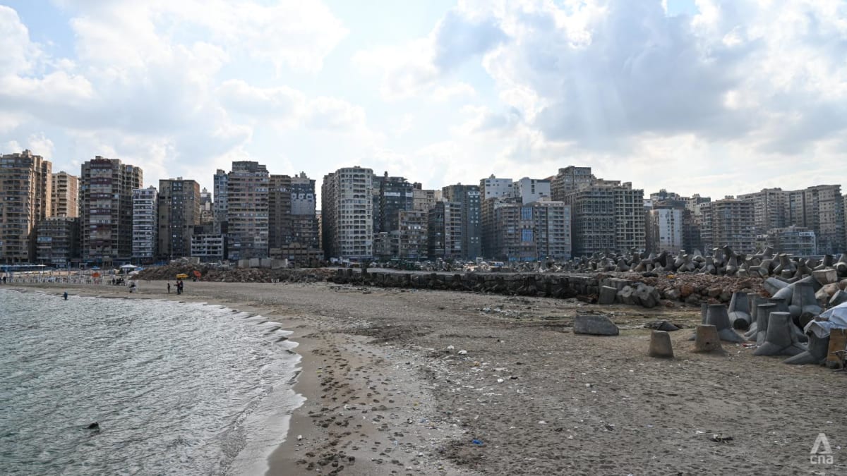 Thousands of concrete wave breaker devices have been installed along Alexandria's coastline. (Photo: CNA)
