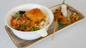 A taco wrapped around a mixture of cultivated and plant-based fish meat. (Photo: Cell AgriTech/Umami Meats)