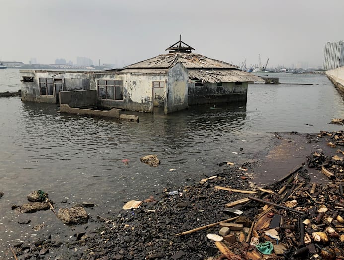 Visit the neighbourhood of Muara Baru in North Jakarta, and one can find an inundated mosque sitting in the sea behind a concrete seawall — another grim reminder of the city’s sinking problem.