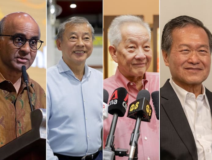 Four men — former Senior Minister Tharman Shanmugaratnam, businessman George Goh, former GIC chief investment officer Ng Kok Song and former NTUC Income chief executive Tan Kin Lian — have thrown their hats into the ring.