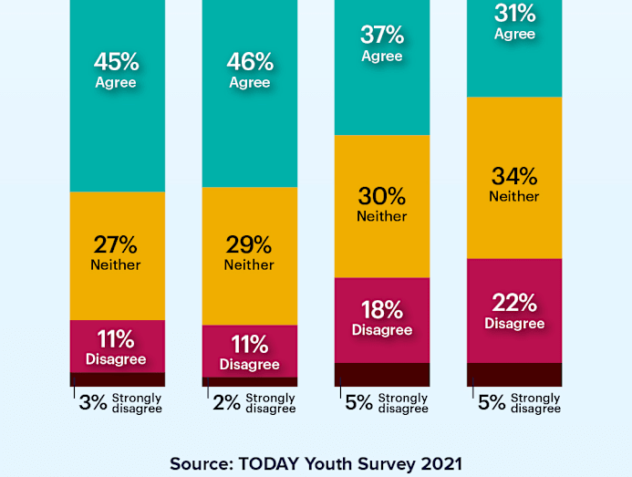 The TODAY Youth Survey 2021, which polled 1,066 respondents between the ages of 18 and 35 in early October, found that the pandemic has caused many young people to become more insecure about their future in general.