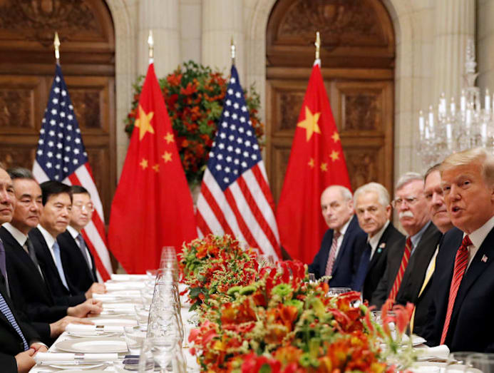 US President Donald Trump and Chinese President Xi Jinping, along with senior officials from both countries, attend a working dinner after the G20 leaders' summit in December last year. Photo: Reuters