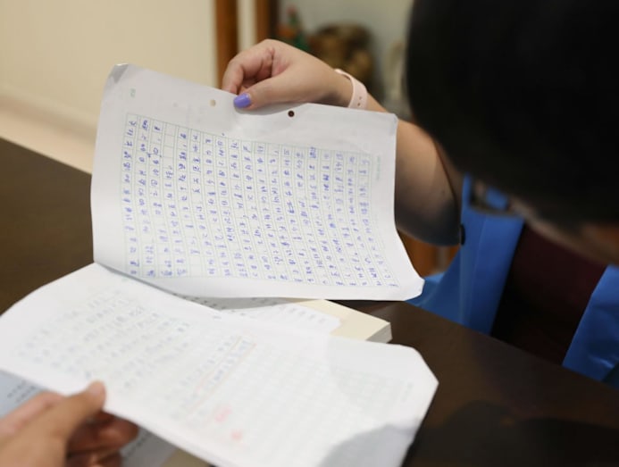 At home, the 35-year-old secondary school Malay language teacher, who has three children aged four to nine, encourages the older children to keep a bilingual journal.