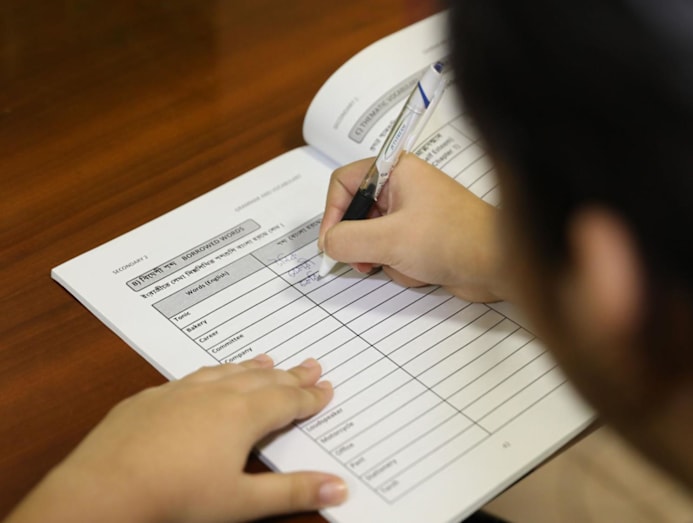 She regularly prompts children to practise Tamil at home through exercises such as a journaling assignment where students interview their parents on their occupations.