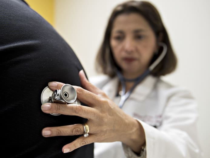 A medical doctor examines a patient with a stethoscope. Photo: Bloomberg
