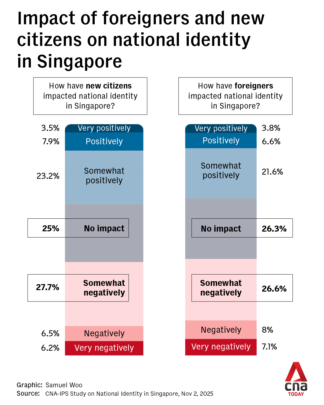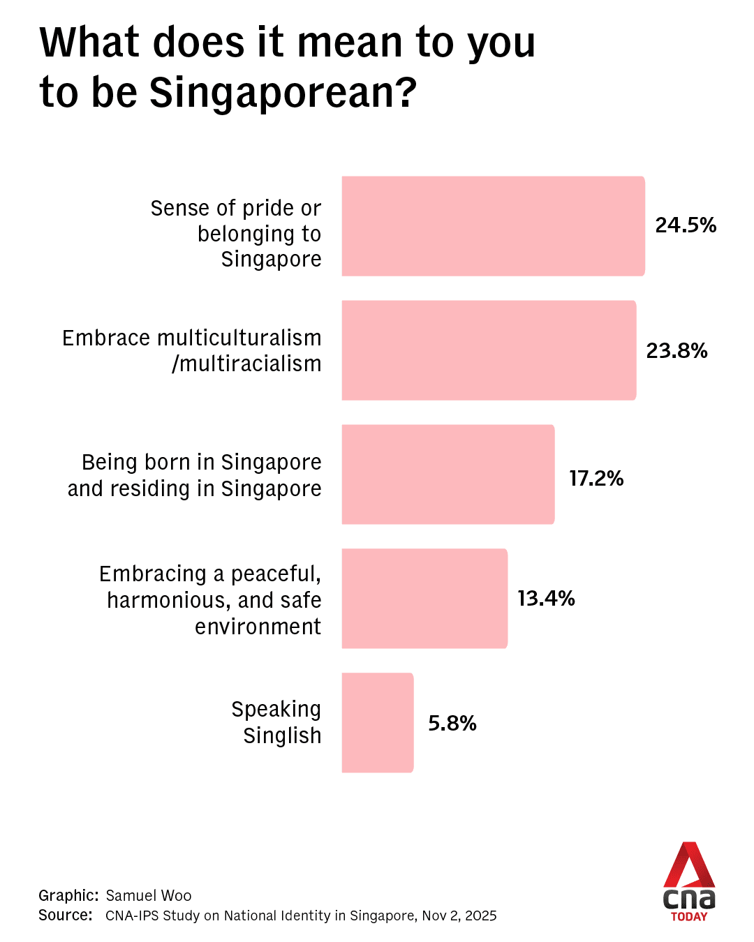 The study was conducted between October and November 2024, collecting responses from 2,000 Singapore citizens and PR respondents. Its findings will also be featured in Being Singaporean, a CNA documentary airing on Nov 3 and 4.